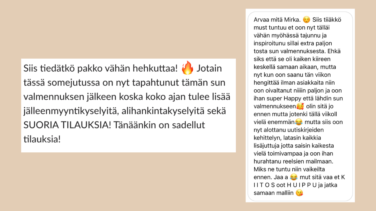 - strategiat, joilla asiakkaani sai loppuunmyytyä tuotteensa vain 2 päivässä
